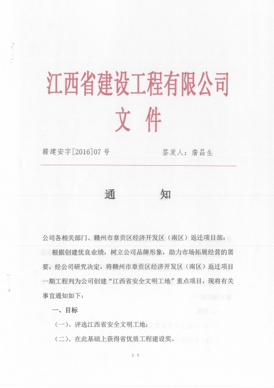 關于創建“安全文明工地”的通知