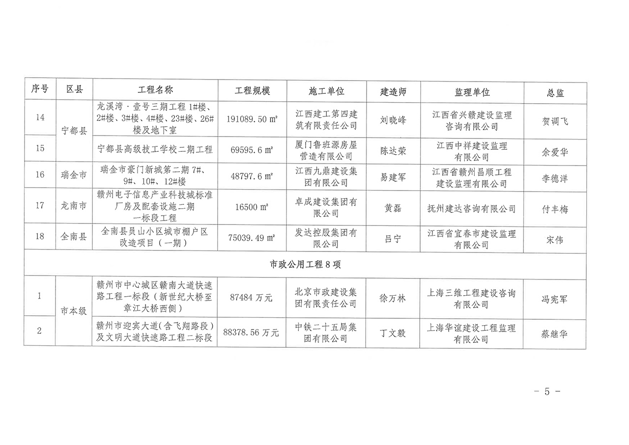 關(guān)于公布2021年度贛州市優(yōu)質(zhì)建設(shè)工程獎(jiǎng)工程名單的通知